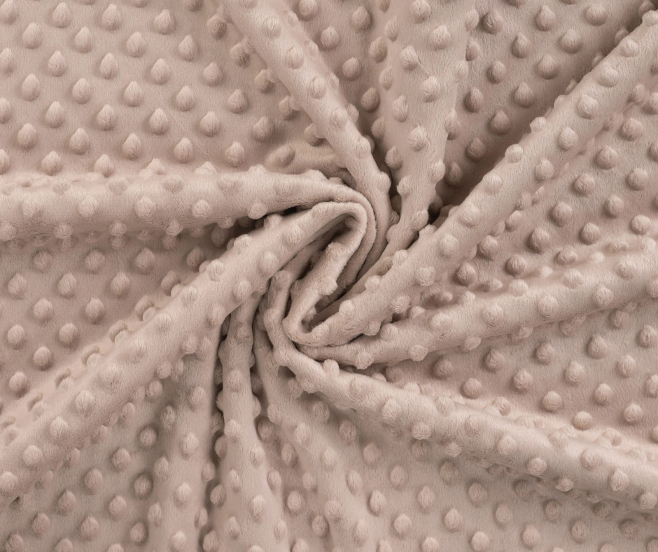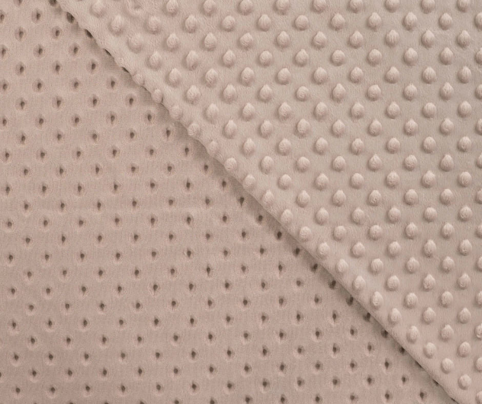Lágy, homokszínű minky egy rendkívül puha, plüss hatású anyag, amelyet elsősorban babatermékek, takarók, párnák készítésére használnak. Ez a kiváló minőségű poliészterből készült textil nemcsak hihetetlenül bársonyos tapintású, hanem rendkívül meleg és tartós is.